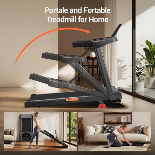 90% Pre-Assembled & Space-Saving for Any Home:This folding treadmill with incline arrives 90% pre-assembled, allowing for fast, stress-free setup. Built-in transport wheels make moving effortless, while the compact folding design saves valuable space. It fits seamlessly into apartments, home gyms, or office spaces.