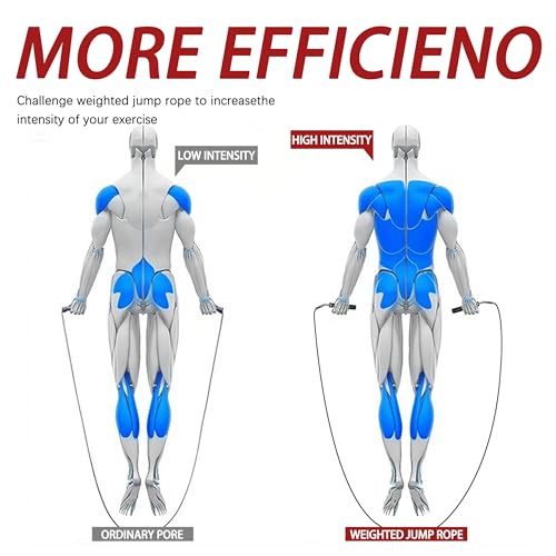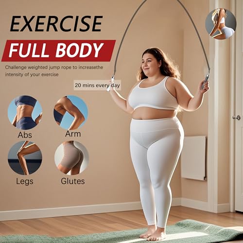 Weighted Jump Rope for Men Women -Interchangeable 1/5lb 1/4lb 1/2lb Heavy jump ropes – 360 Degree Spin – Length Adjustable,Ergonomics Leather Grip Skipping Rope for Fitness Weight Loss & More